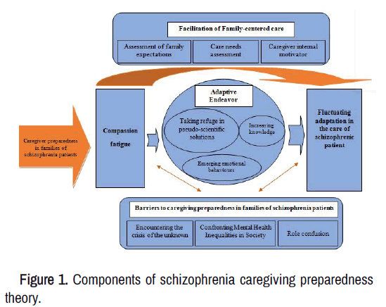 Adaptive endeavor: Since schizophrenia affects every part of a caregiver's life, they try to change their roles in different ways, like "taking refuge in pseudo-scientific solutions," "increasing knowledge," and "emerging emotional behaviors." Families used these strategies in response to their primary concern of "compassion fatigue." "Adaptive endeavor" is the core category in preparing a caregiver. It has three subcategories: "taking refuge in pseudo-science solutions," "increasing knowledge," and "emerging emotional behaviors."